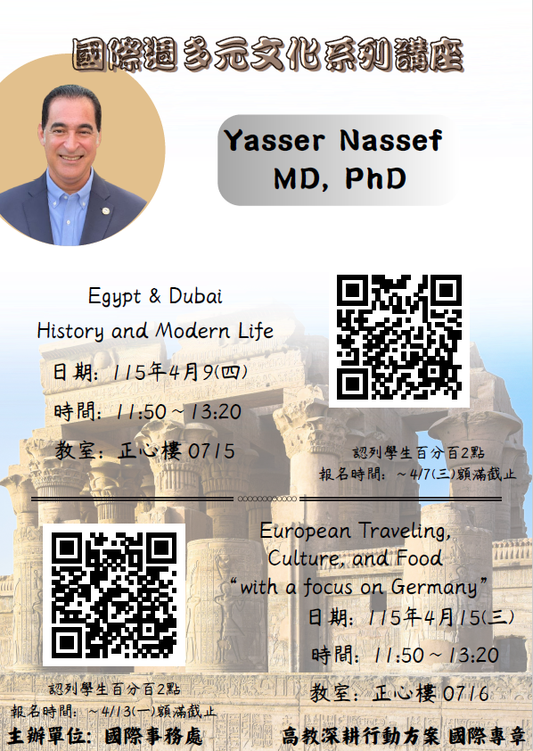 埃及文化講座: 4/9,4/15