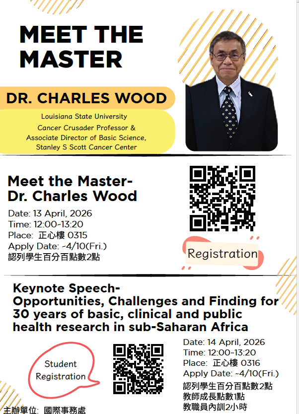 Dr. Charles Wood 專題演講: 4/14