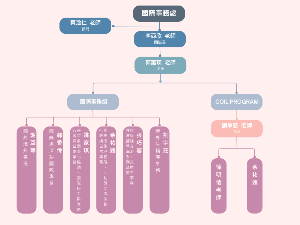 - 負責與國外(含兩岸三地)大學及學術機構締約之規劃及執行。